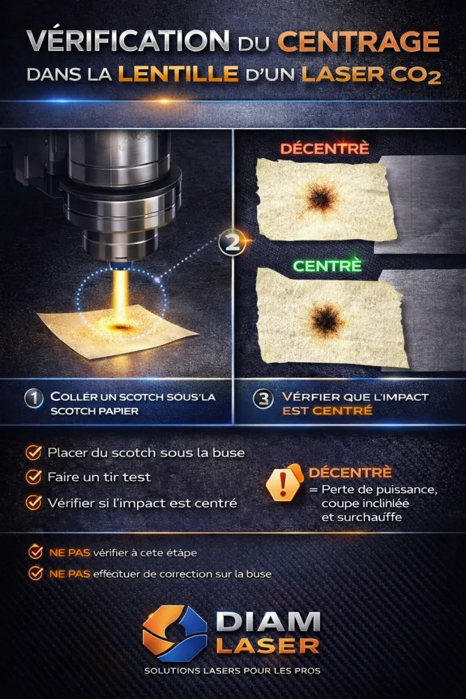 Un mauvais centrage entraîne perte de puissance, coupe inclinée et surchauffe optique