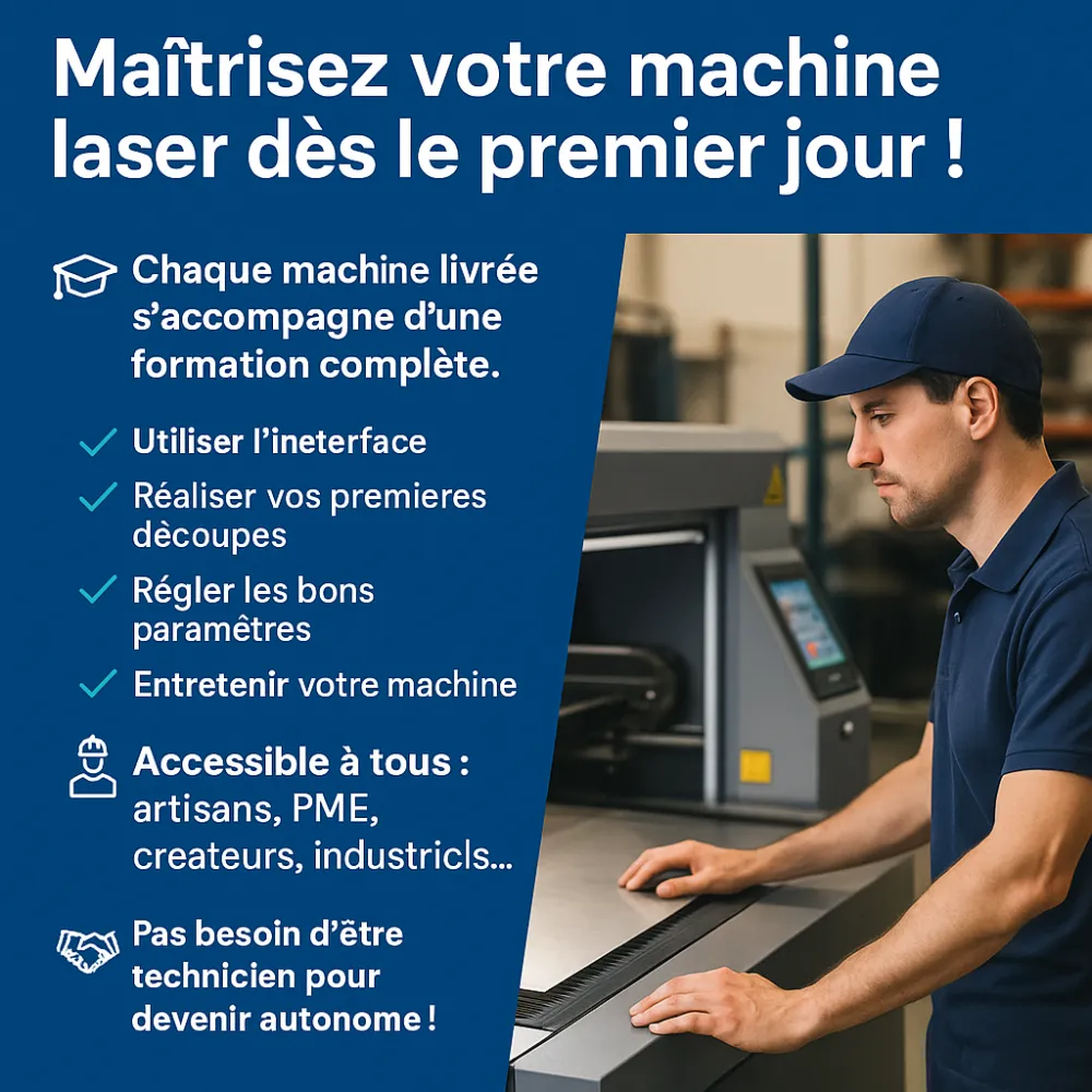 Maîtrisez votre machine laser dès le premier jour !Chez Diam Laser, chaque machine livrée s’accompagne d’une formation complète, personnalisée et concrète, dans votre atelier ou dans nos locaux.